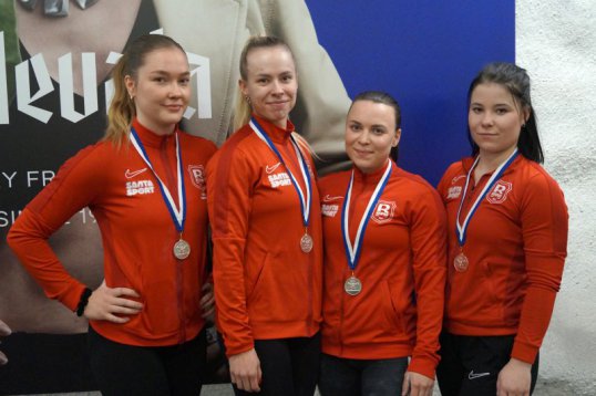 Reippaan joukkue: Sanni Takkunen paino 67,65/tulos 73+90=163 kg, Venla Silvennoinen 58,2/69+88=157, Ronja Leppiaho 62,0/73+93=166, Anette Kirkanen 57,55/76+96=172.